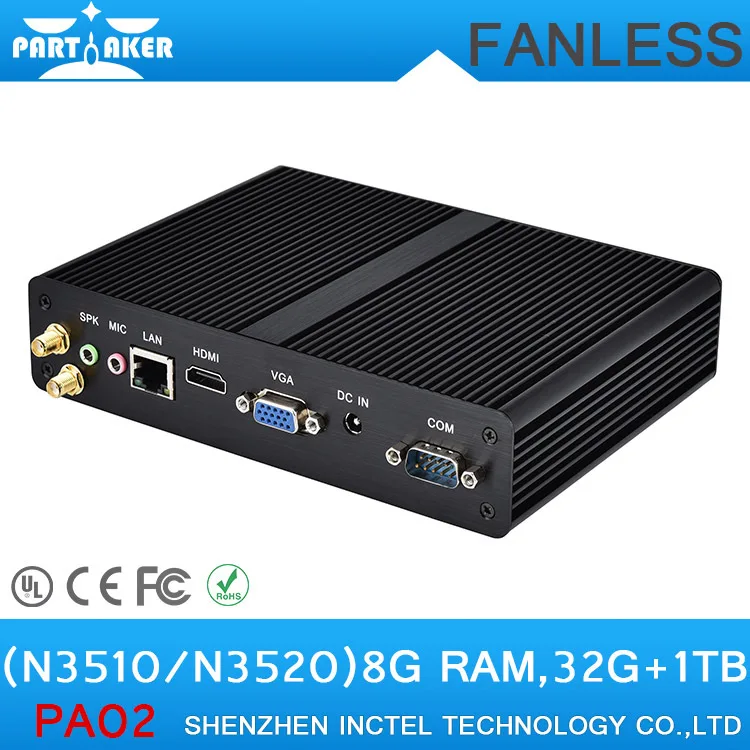 Main Features : 8G RAM SSD/ HDD Intel Quad Core N3510/ N3520 Smallest Mini PC Desktop Computer Linux with 2.00 GHz HD 2*COM Ports