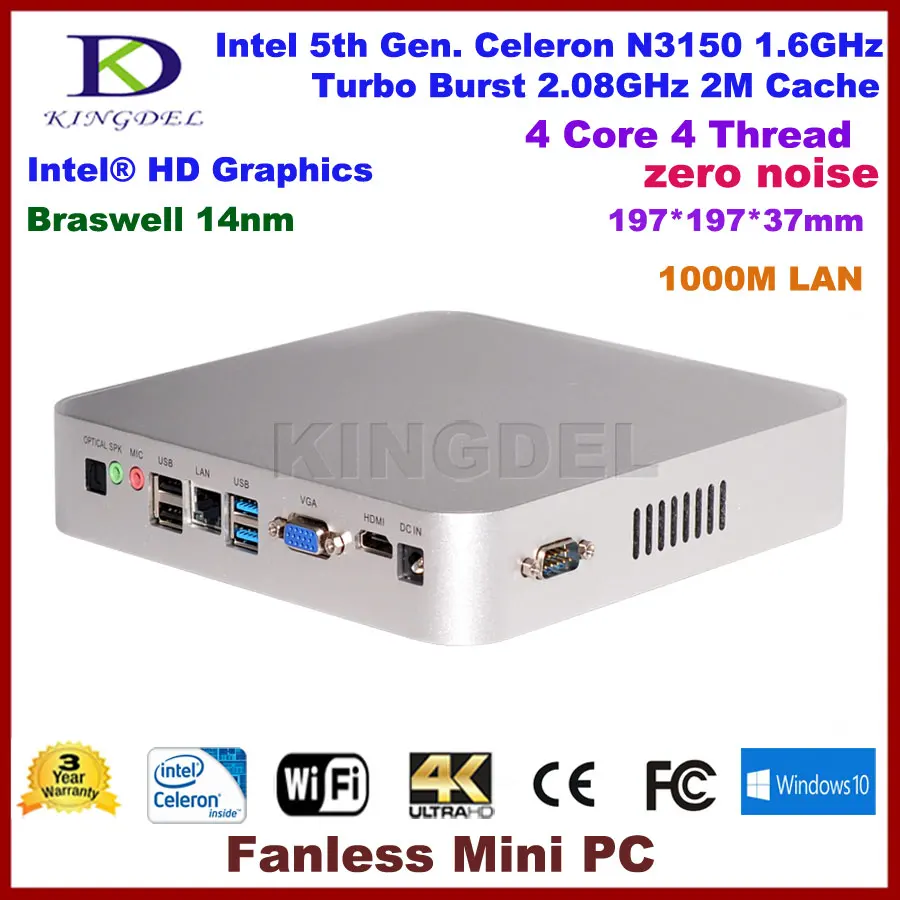 Main Features : Fanless Mini PC Windows 10 Desktop Computer Intel Celeron N3150 Quad Core WiFi HDMI VGA,COM rs232,industrial pc